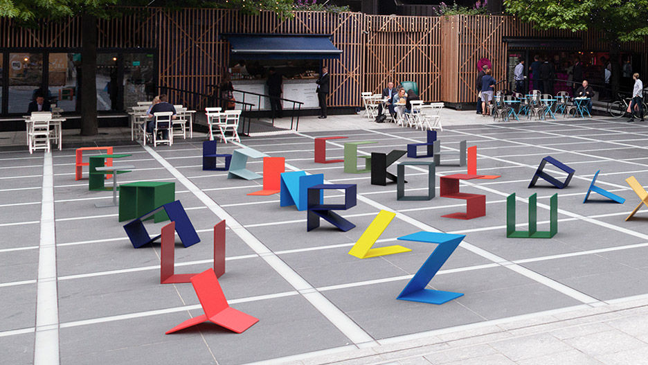 Londra merkezli grafik tasarım stüdyosu Kellenberger-White, London Design Festival 2018 için Finsbury Avenue Square, Broadgate’te, alfabenin 26 harfini içeren katlanmış metalden, renkli ve etkileşimli bir enstalasyon gerçekleştirdi.